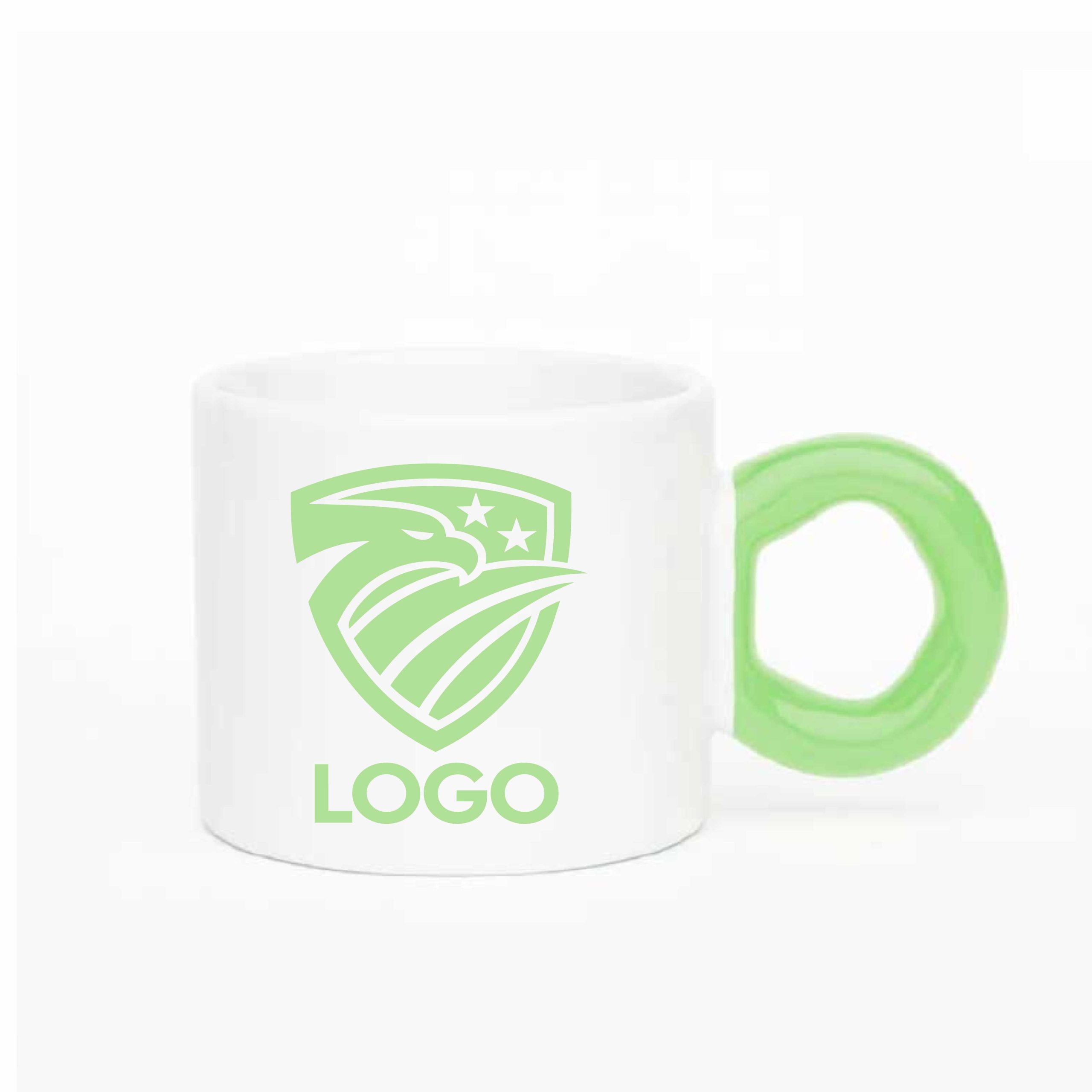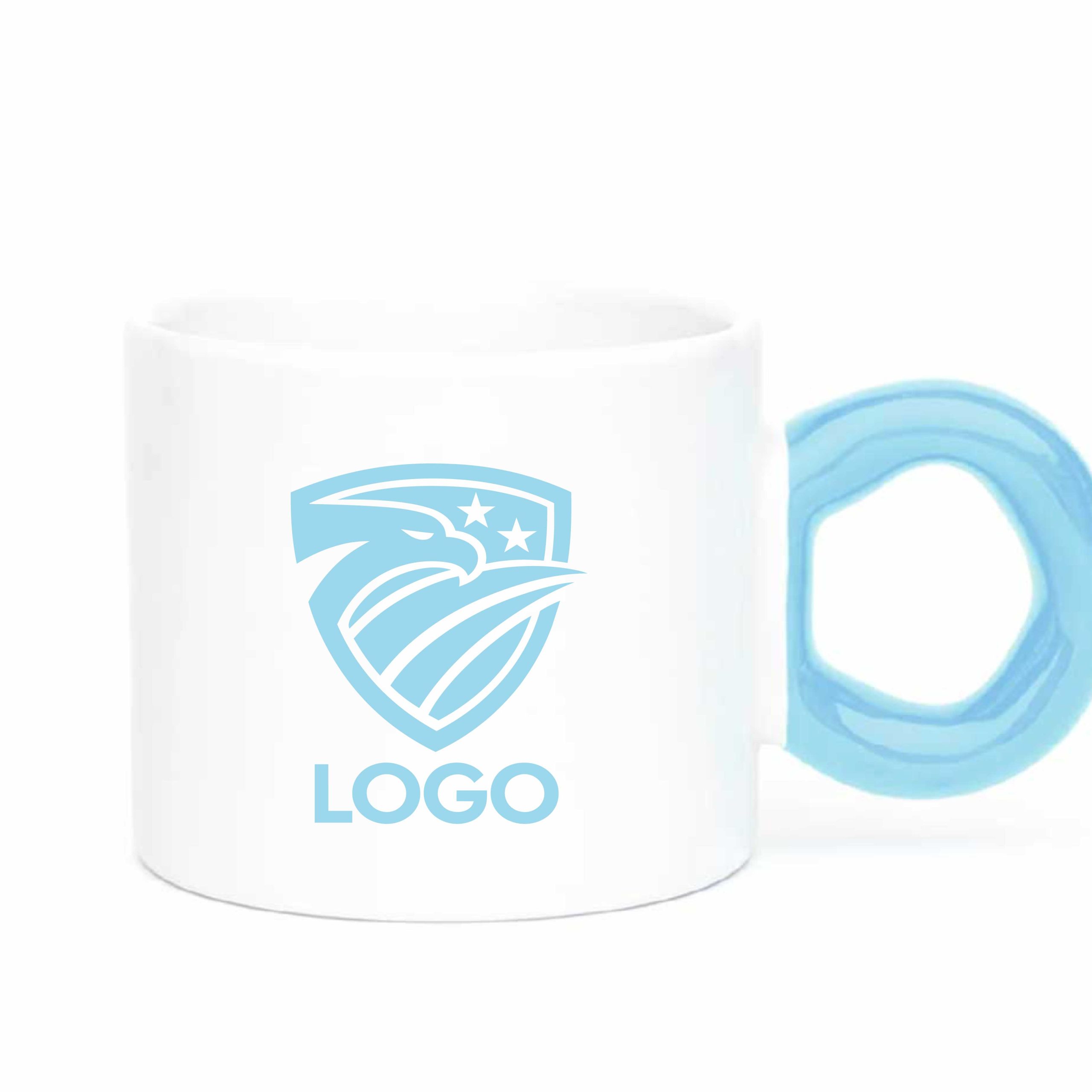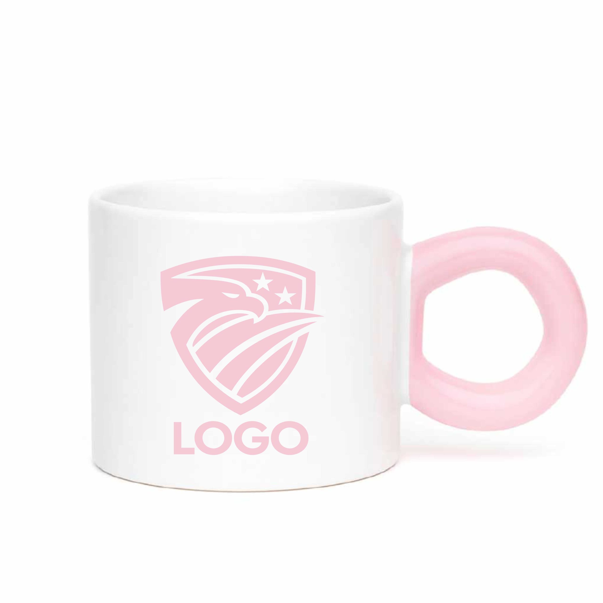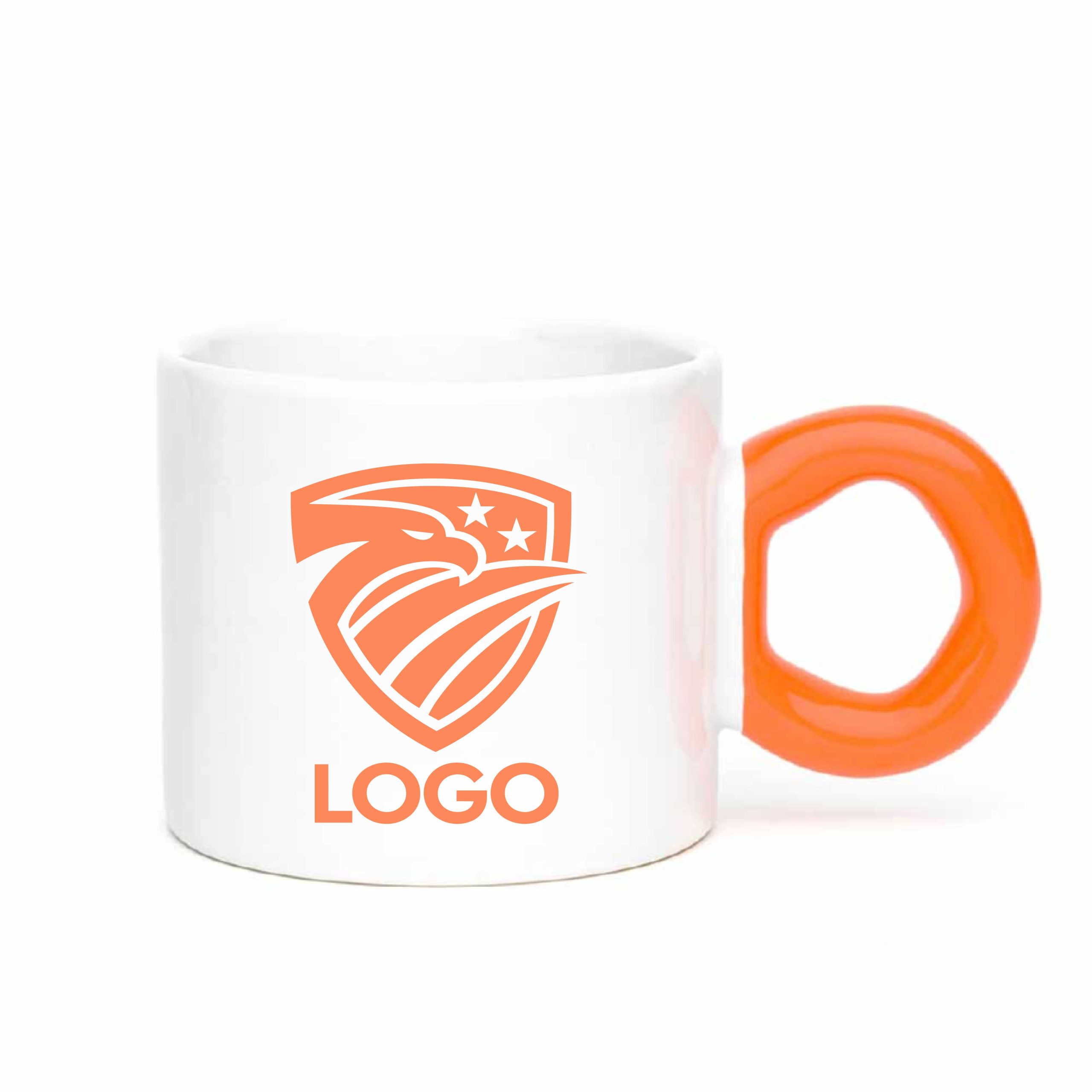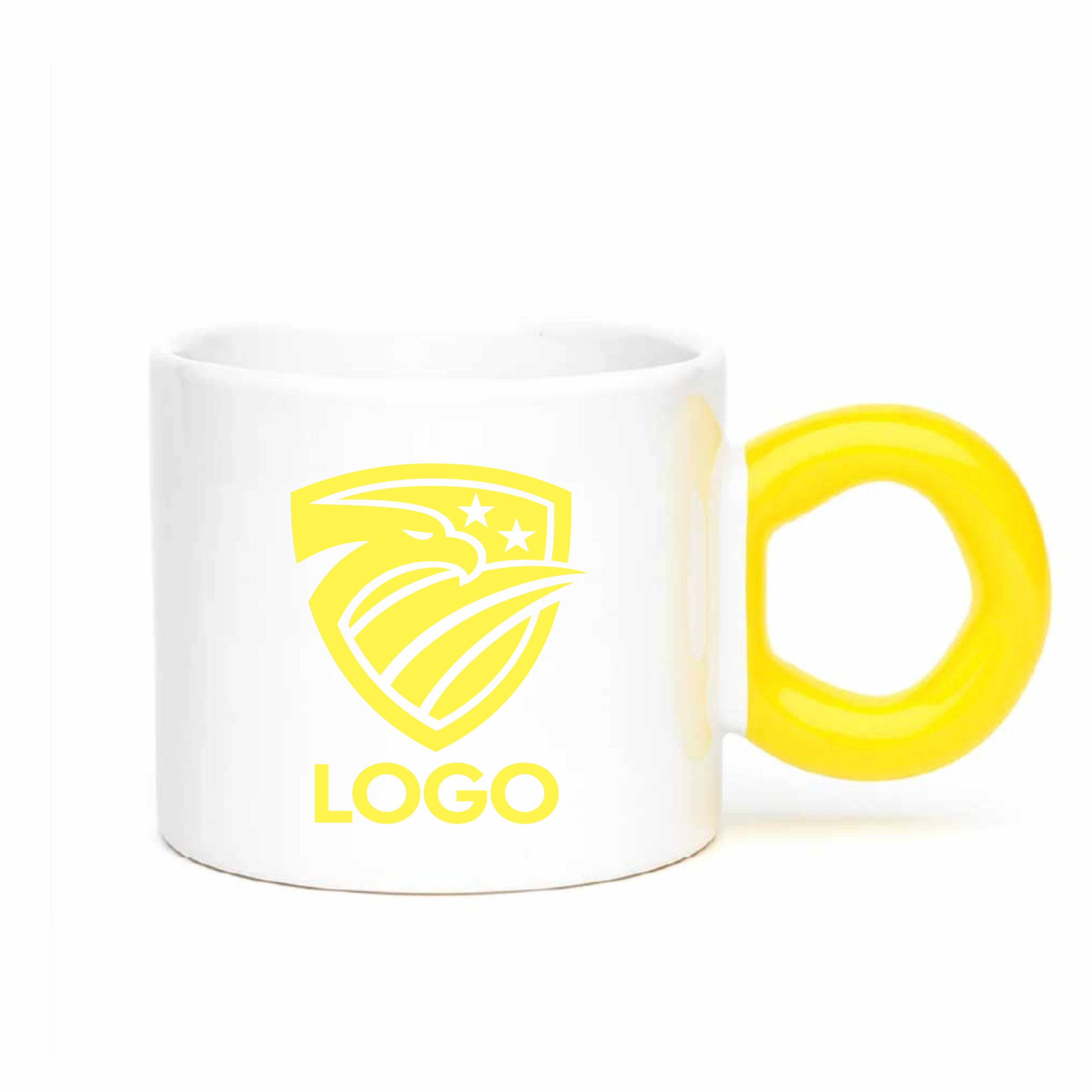 Ceramic Cup with Colorful Donut-Shaped Handle , in various colors, customized with your logo, images, and/or text of your choice.