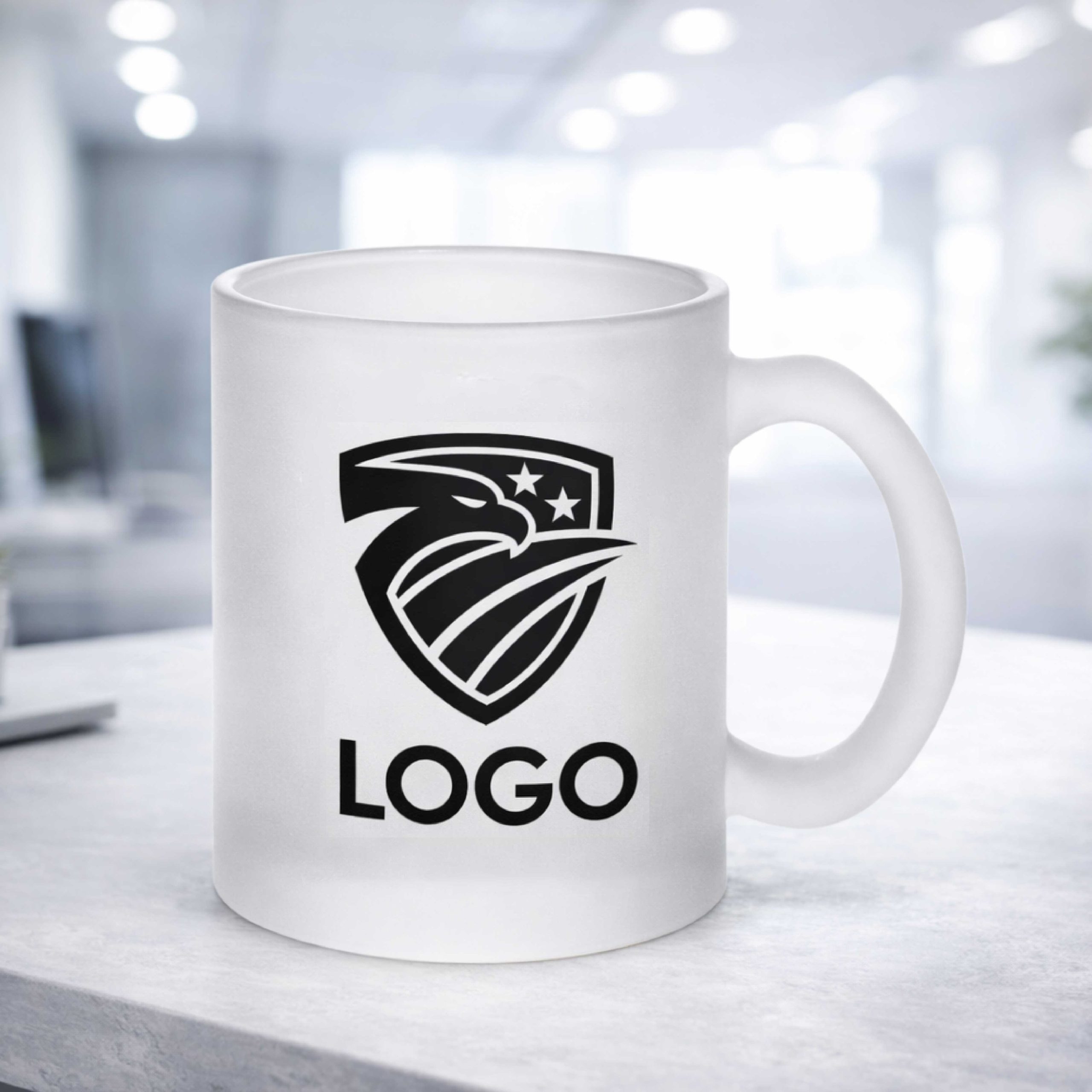 Frosted glass  mug customized with your logo, images, and/or text of your choice.